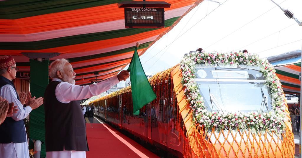 INDIA: The steep valleys and verdant mountains of Jammu & Kashmir were tied more tightly into the Indian transport network when Prime Minister Narendra Modi personally flagged off the first through train from Katra to Srinigar on June 6.